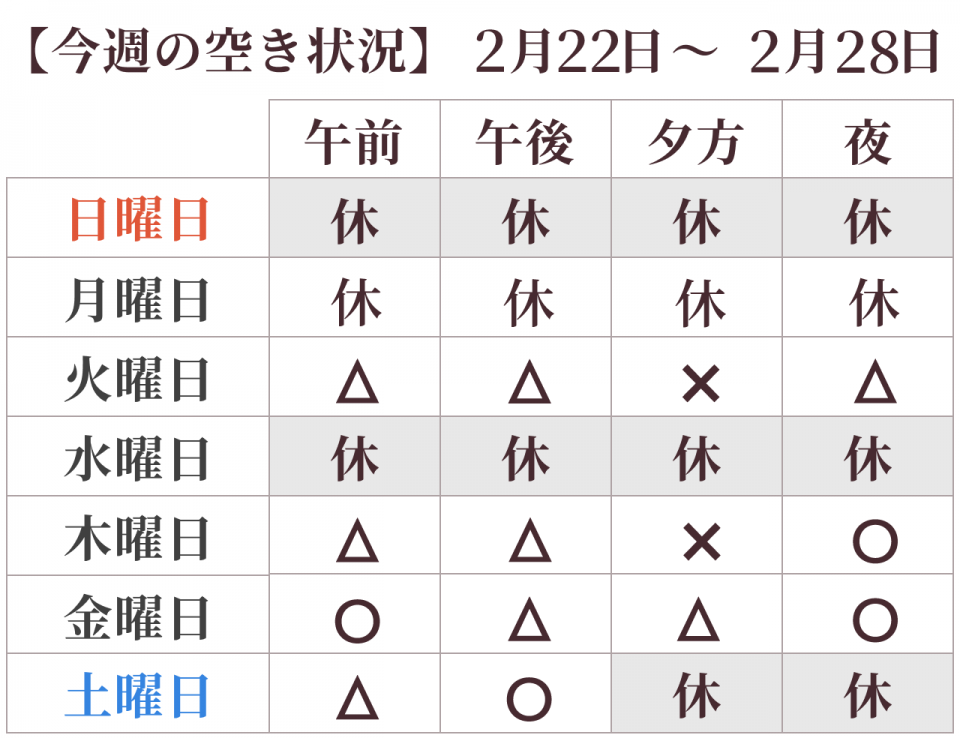 ・施術は**30分枠(初回は60分)**です。